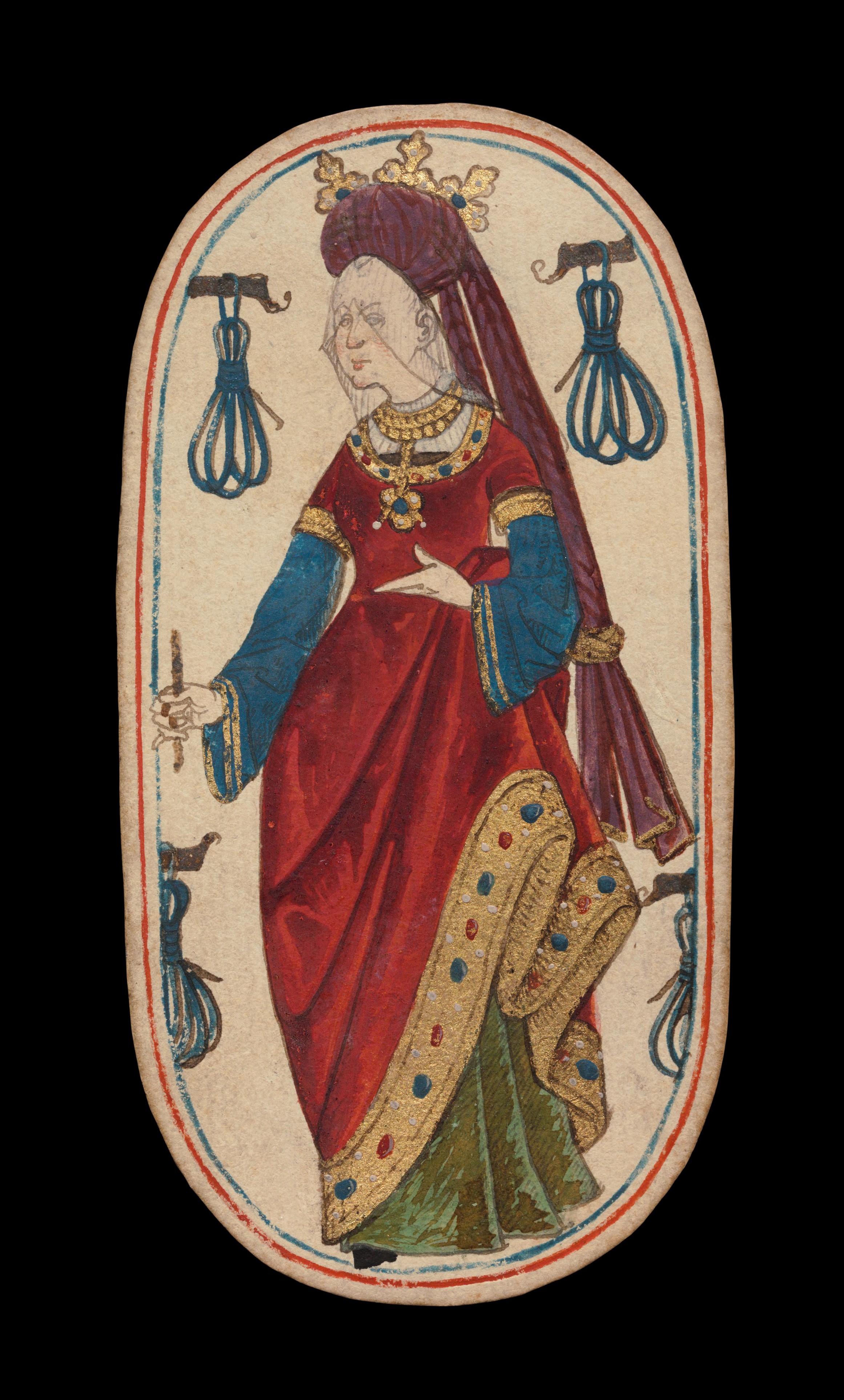 Queen of Collars, Queen of Horns, Queen of Nooses, Queen of Tethers, from The Cloisters Playing Cards Date ca. 1475–80, Made in Burgundian territories, South Netherlandish