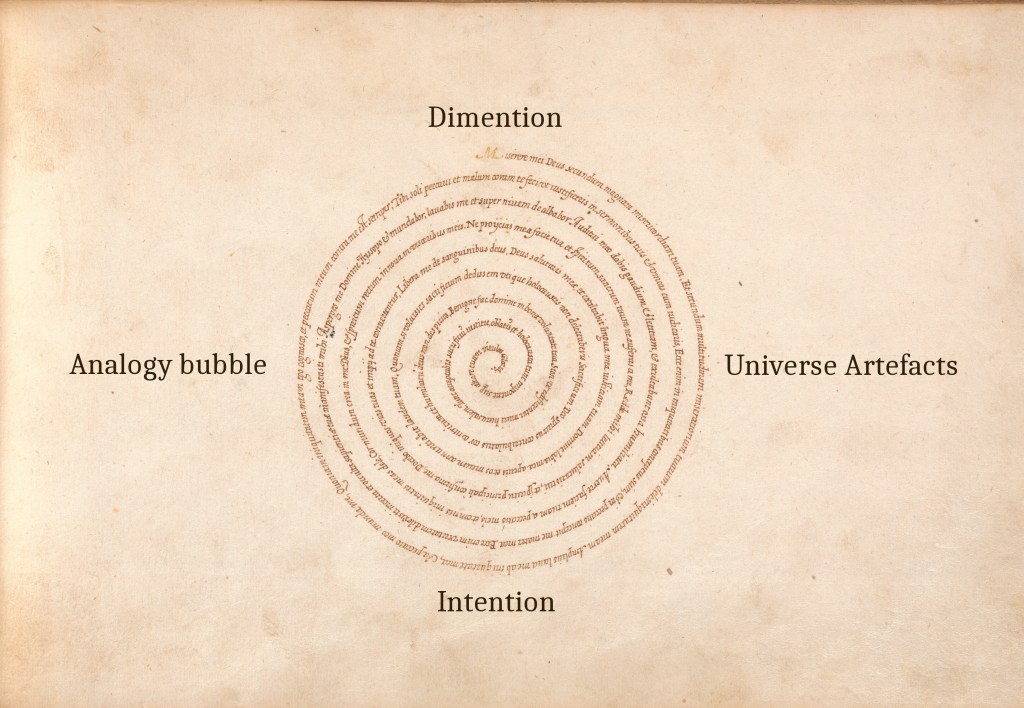 In Hermenaria project, I call a one’s point of view at a particular moment of time an analogy bubble. And world’s laws, rules and life is presented in informational artefacts. Their interactions come from an interpretation of an artefact by one’s point of view in a particular state of mind. The same artefact may be read and interpreted in infinite ways, as there are infinite states of mind of every personality.